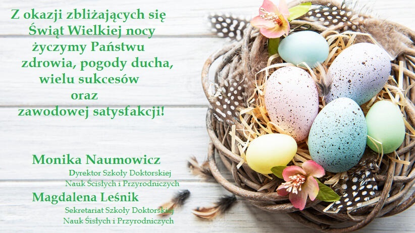 Z okazji zbliżających się Świąt Wielkiej nocy życzymy Państwu zdrowia, pogody ducha, wielu sukcesów oraz zawodowej satysfakcji!
